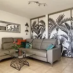Featuring a sofa set, F2 Proche Plages, Vue Mer is equipped with a flat-screen TV with satellite channels, an iron with ironing board, and conveniences like air conditioning. The bathrooms feature a separate toilet and a shower. Furthermore, a hairdryer and towels is available.